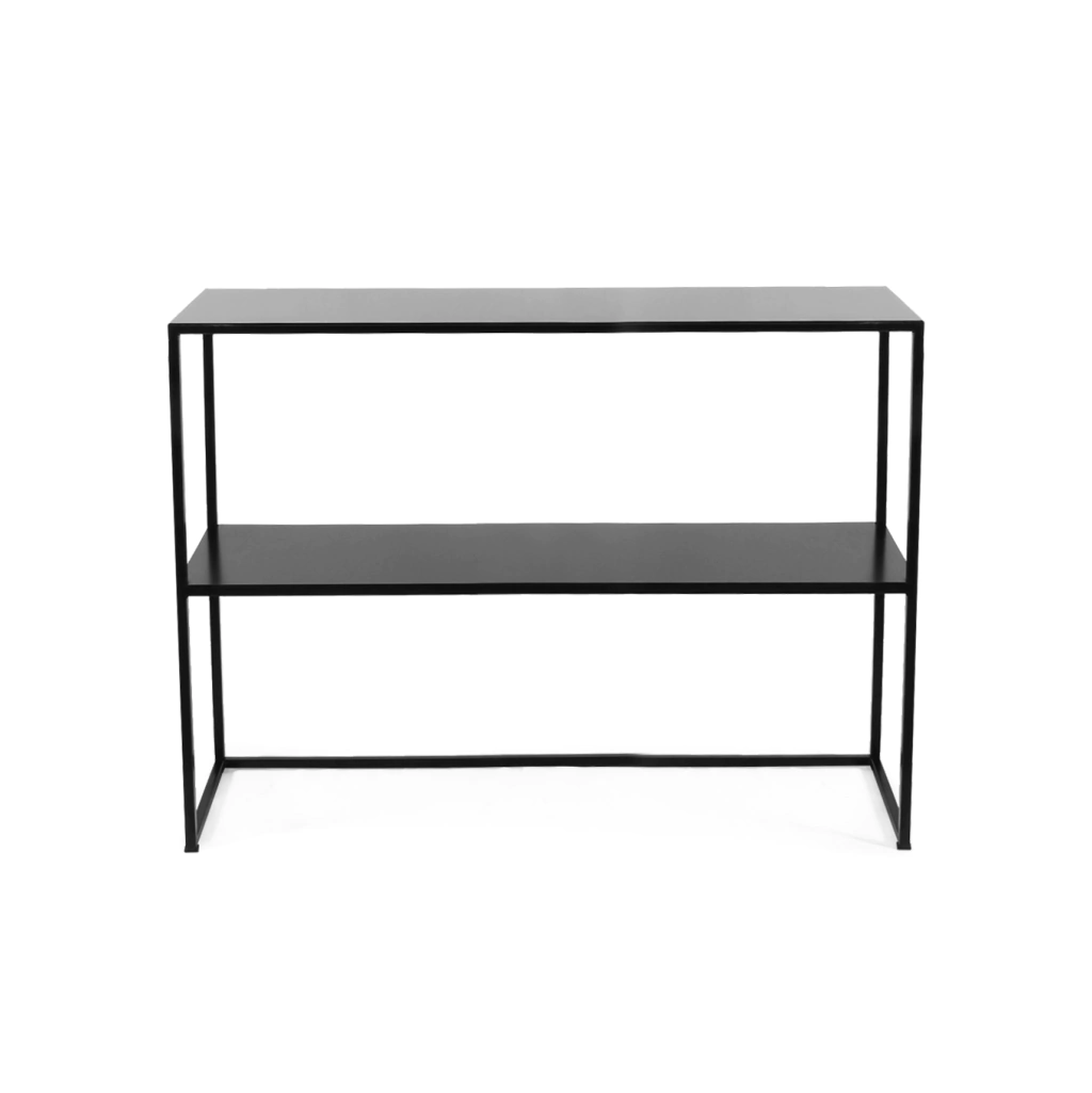 Biblioteca de dos estantes, con un estilo industrial fabricado en chapa y hierro.