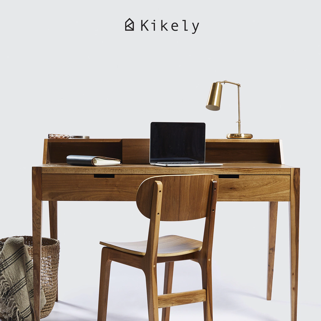 Escritorio fabricado etreramente en madera Petiribí, estrcutura en madera maciza y tapa enchapada. Cuenta con dos cajones y espacio de guardado superior.