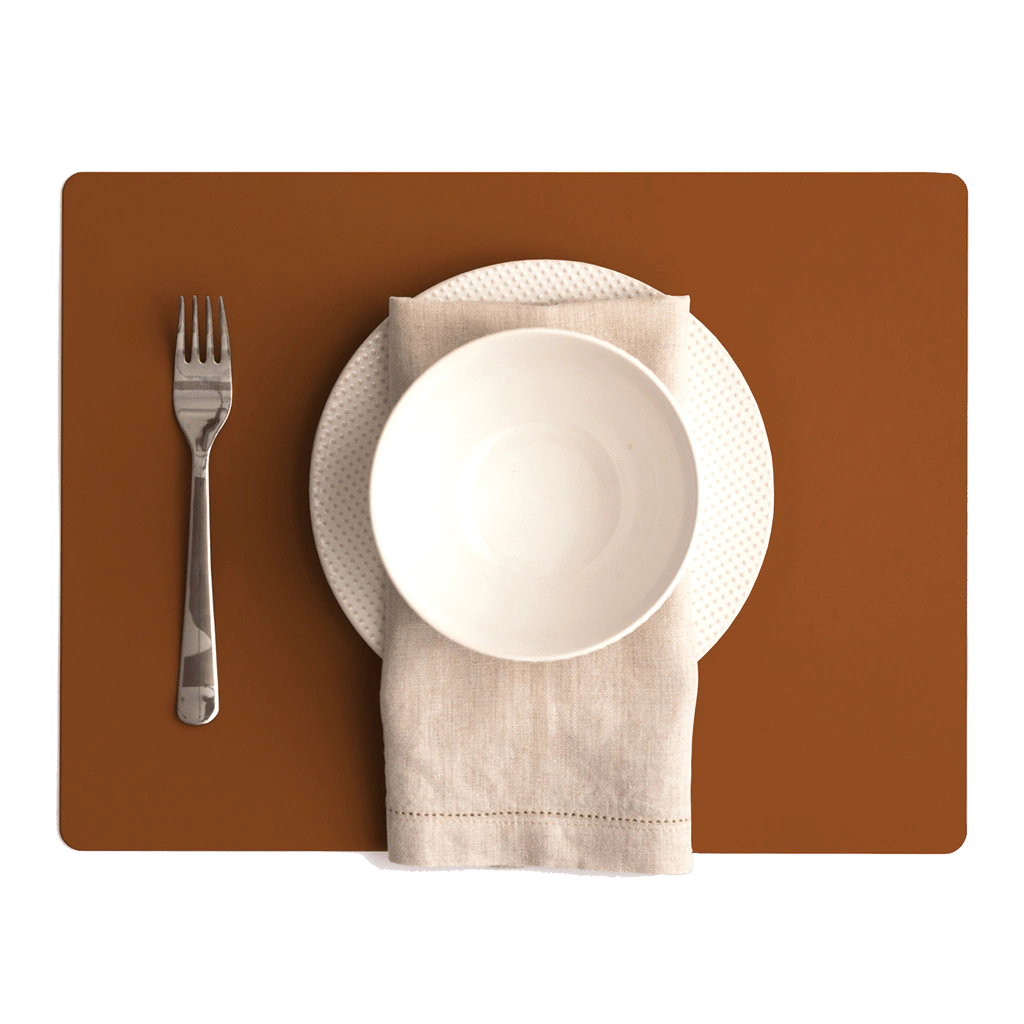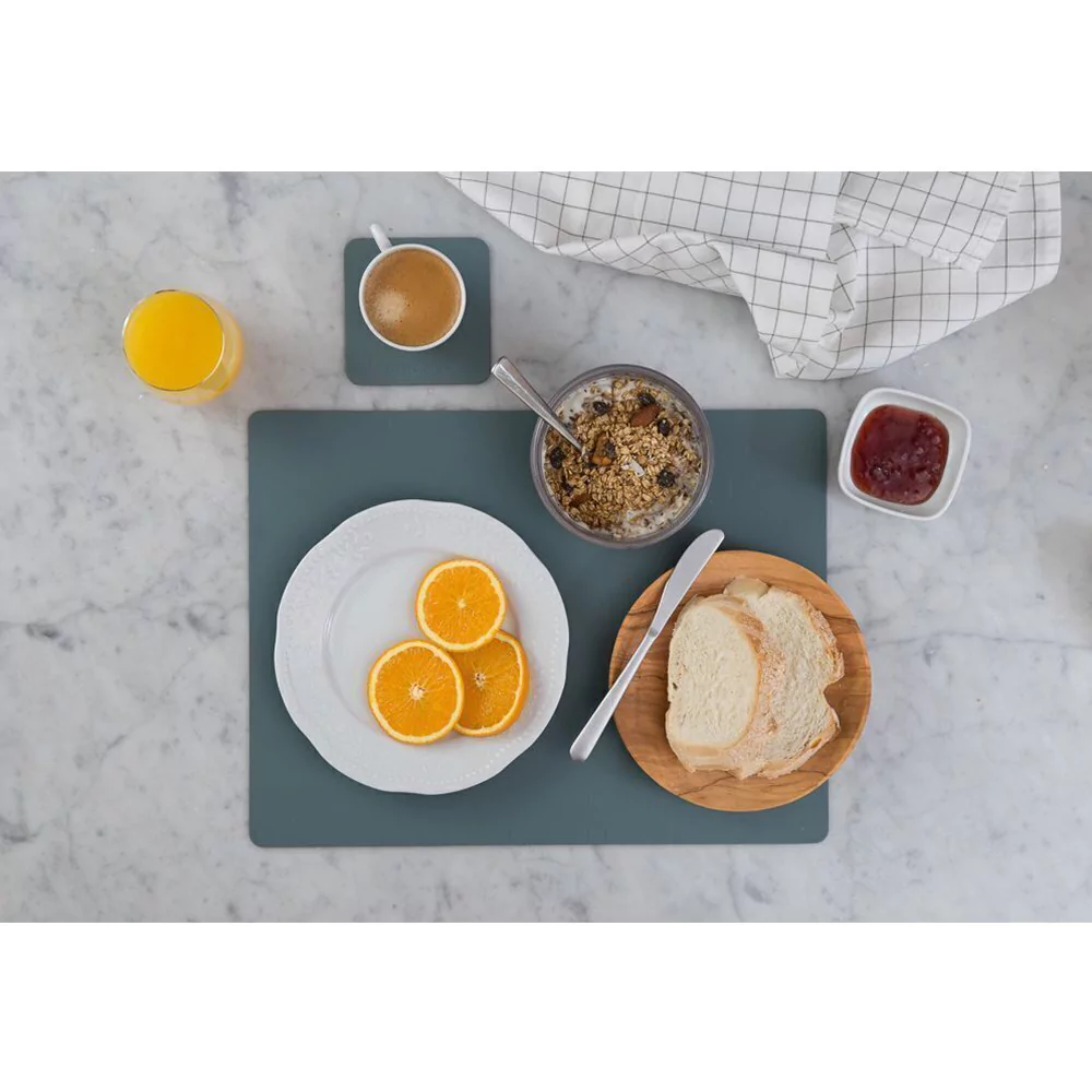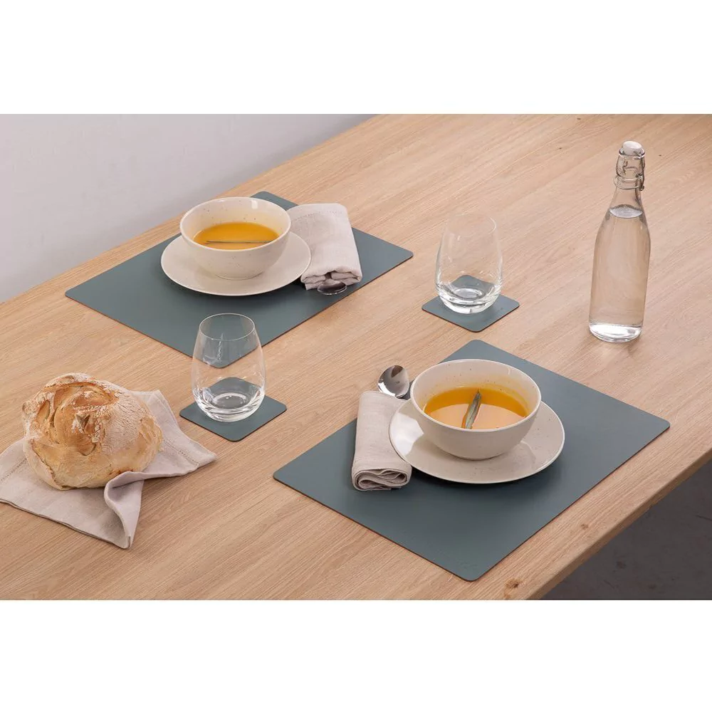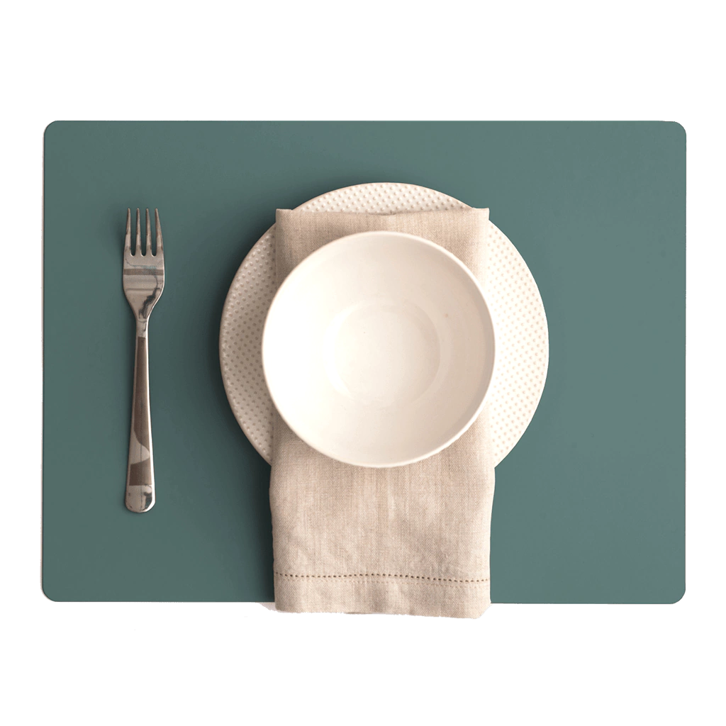 Los individuales son fabricados con cuero reciclado, le da una segunda vida a los descartes vinculados a la cadena de valor de la industria del cuero. Creando un nuevo material de superficie de fácil limpieza. Diseño sustentable y duradero.