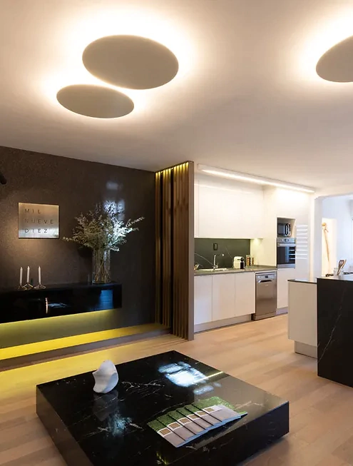 Luz indirecta, cuerpo metálico, perfil cilindrado con led de tensión constante.