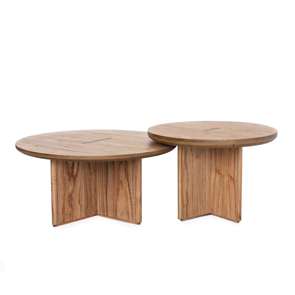 Mesa baja Circe fabricada en madera petiribi. Base en forma de cruz.