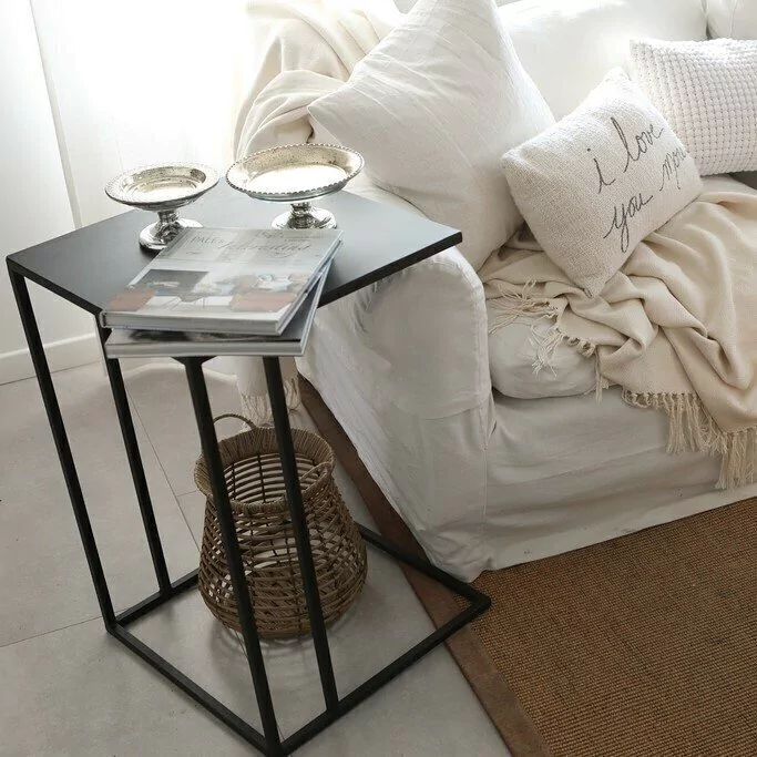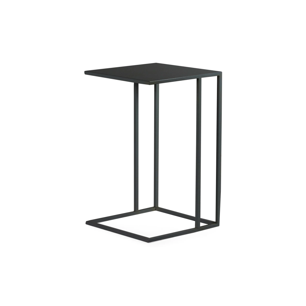 Mesa de arrime acabado mate, con un estilo industrial fabricado en chapa y hierro.