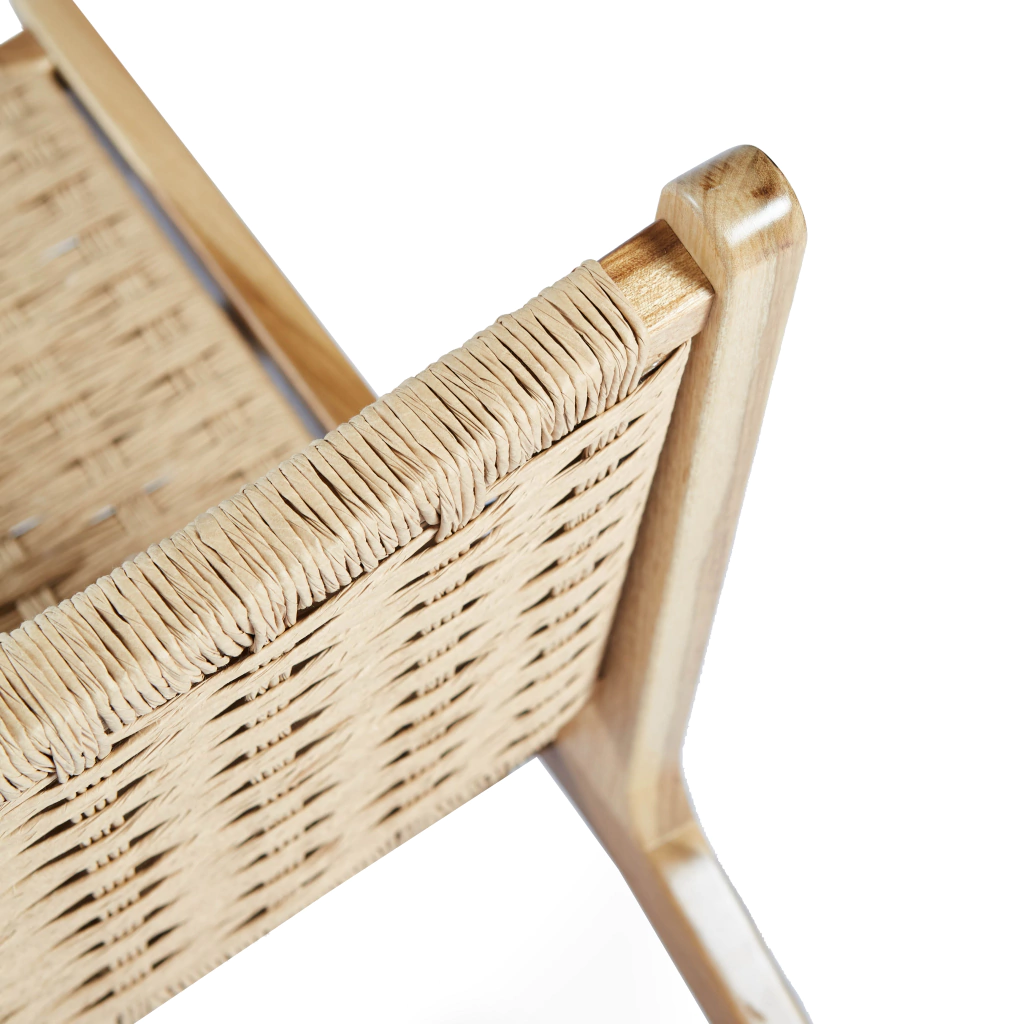 Materiales: Madera Petiribí. Asiento y respaldo tejido en hilo de papel.